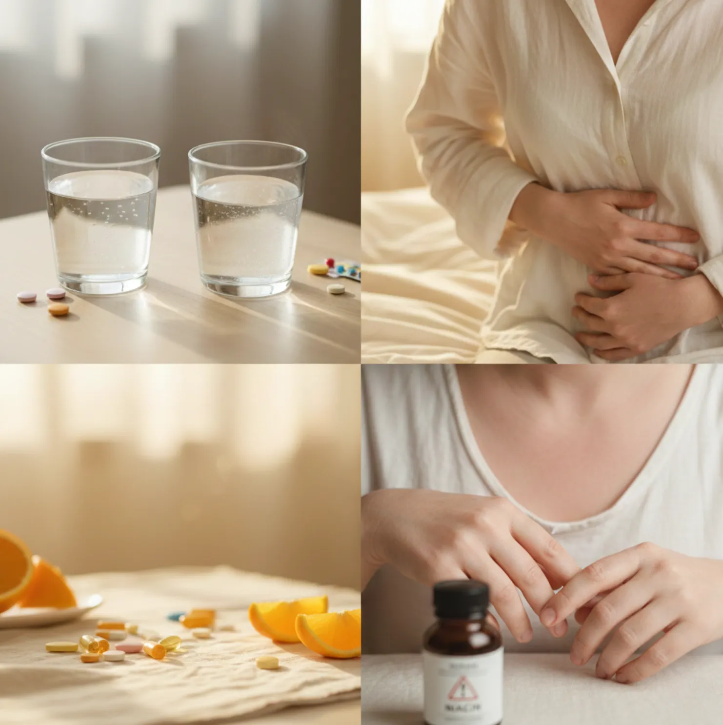 อาการเหล่านี้อาจไม่ได้มีสาเหตุมาจากวิตามินเสมอไป แต่ถ้าเกิดขึ้นในระหว่างที่กินวิตามินหรืออาหารเสริม ควรสงสัยและหยุดใช้ก่อน แล้วไปพบแพทย์เพื่อตรวจสอบ