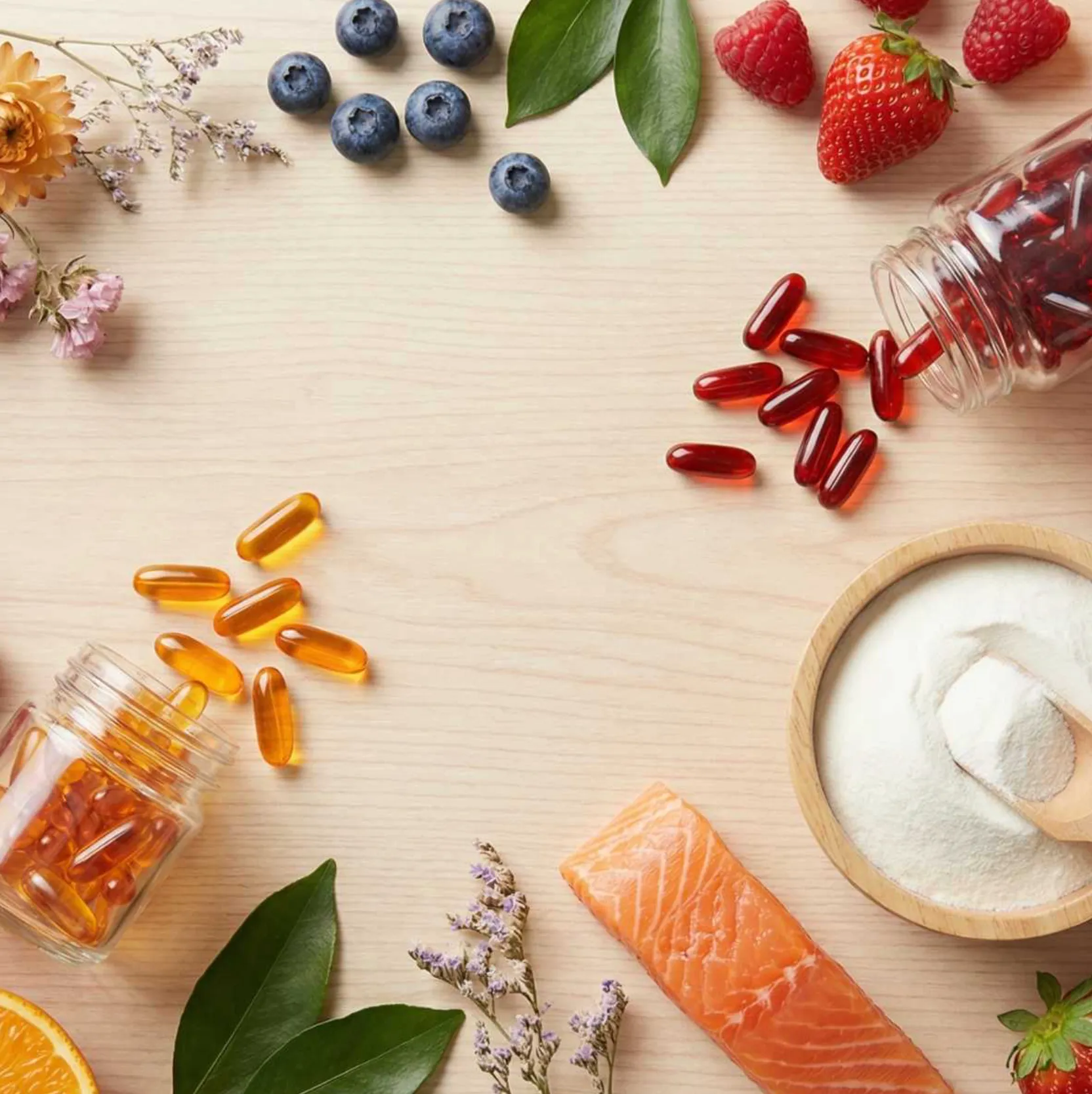 สำหรับคนวัย 30+ ปัญหาผิวพรรณไม่ใช่แค่เรื่องสิวอีกต่อไป แต่เป็นเรื่องของความหย่อนคล้อย ริ้วรอย และความหมองคล้ำสะสม สารอาหารในกลุ่มนี้จึงเน้นไปที่การต้านอนุมูลอิสระ (Antioxidant) และการฟื้นฟูโครงสร้างผิว